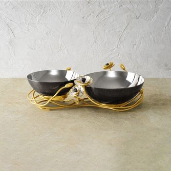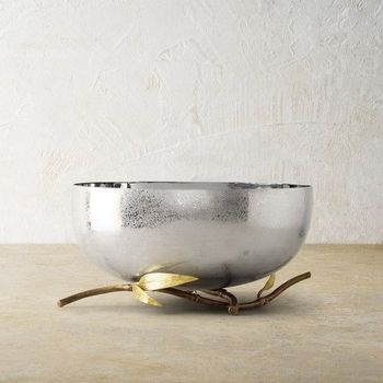 Металлическая декоративная чаша ручной работы с подставкой для обеденного стола и современной декорацией интерьера дома