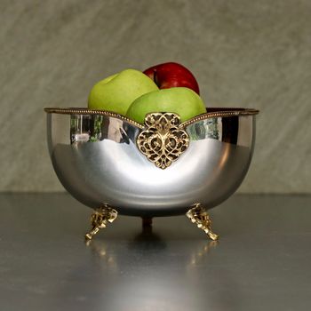 Винтажная металлическая декоративная чаша с подставкой для традиционного домашнего декора и элегантной установки интерьера столовой