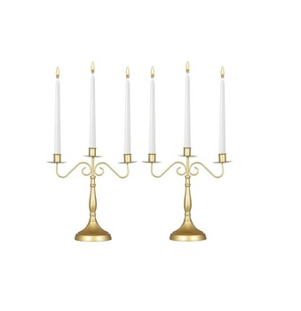 เชิงเทียนโลหะพรีเมี่ยมสำหรับงานเลี้ยงอาหารค่ำแสงเทียนที่มีแขนหรูหราและโรแมนติกเรืองแสงสำหรับการรับประทานอาหาร