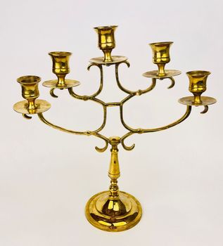 เชิงเทียนโลหะโบราณสำหรับพิธีคริสตจักรที่มีการออกแบบแบบดั้งเดิมและรายละเอียดงานฝีมือสำหรับกิจกรรมทางศาสนา