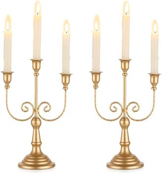 เชิงเทียนโลหะแนวชนบทสำหรับปาร์ตี้ในสวนด้วยผิวสีทองและโครงสร้างที่แข็งแรงสำหรับการตกแต่งกลางแจ้ง